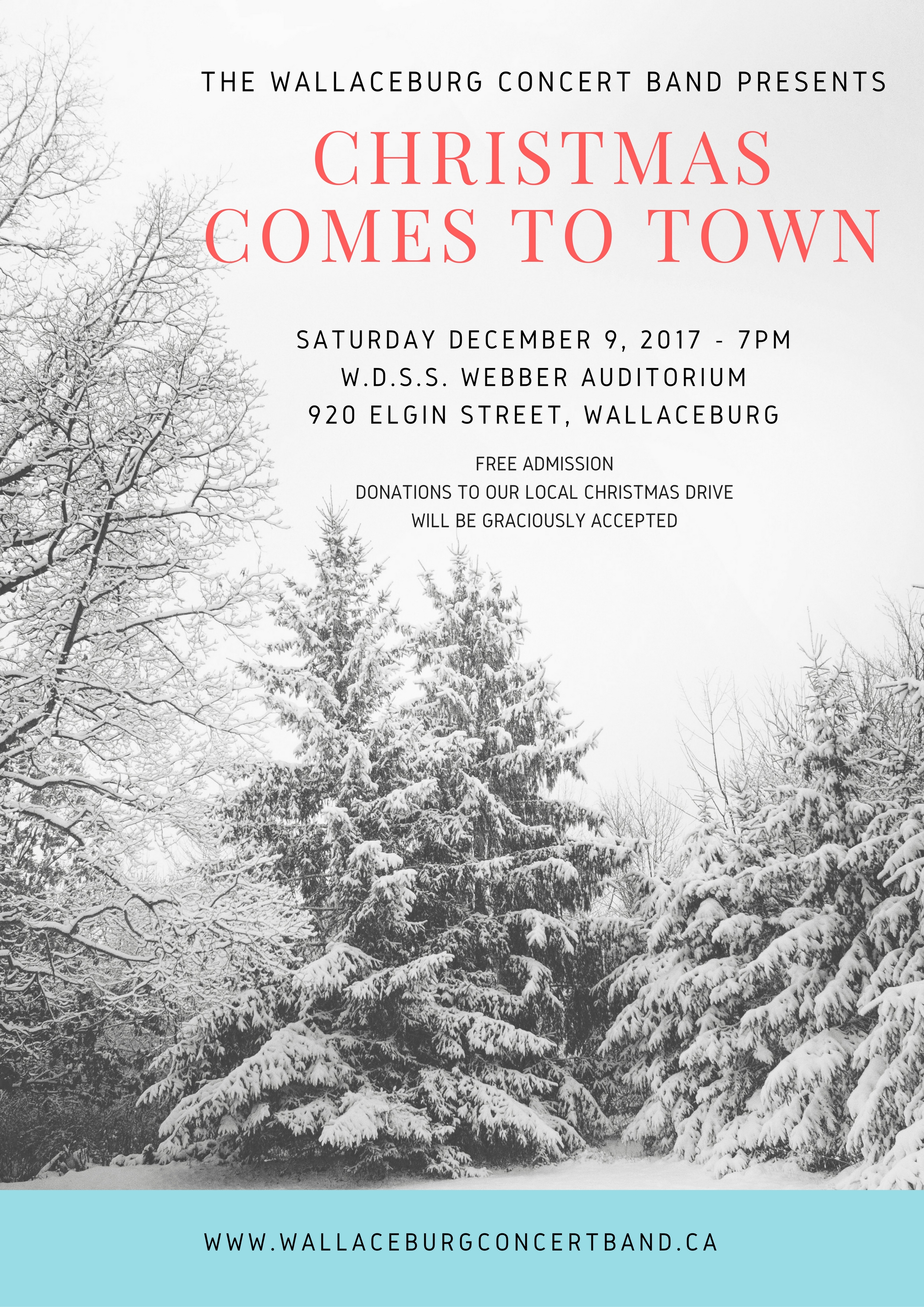 The Wallaceburg Concert Band presented its’ first official public Christmas concert “Christmas Comes To Town,” on Saturday December 9, 2017. It was a full house, and we are all so very appreciative of the kind words shared by the community.