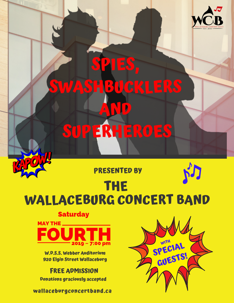 Thank you to everyone who came out to join us Saturday May the fourth, 2019, for our spring concert – “Spies, Swashbucklers and Superheroes.”