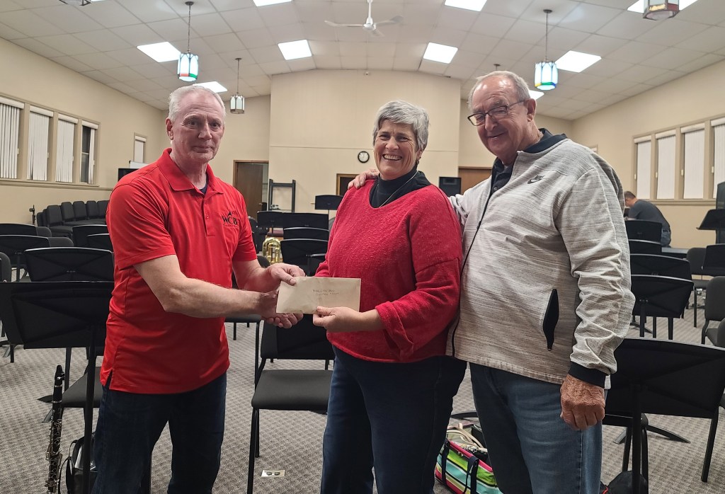 As we begin to wind down from the hustle and bustle of rehearsals and concerts for our holiday break, the WCB would like to send out a very large thank you to all who supported us by attending our concerts, donating to the Salvation Army and our local food drives. We would also like to share our congratulations to the winner of our annual hockey ticket raffle, drawn by Dave Babbitt at our December 3rd concert. Congratulations goes to Marcia Simpson, the lucky winner of the hockey tickets and cash, with a total prize value of $1200.00.
