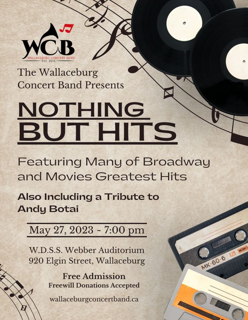 The Wallaceburg Concert Band is happy to announce their next upcoming concert, titled “Nothing But Hits.”