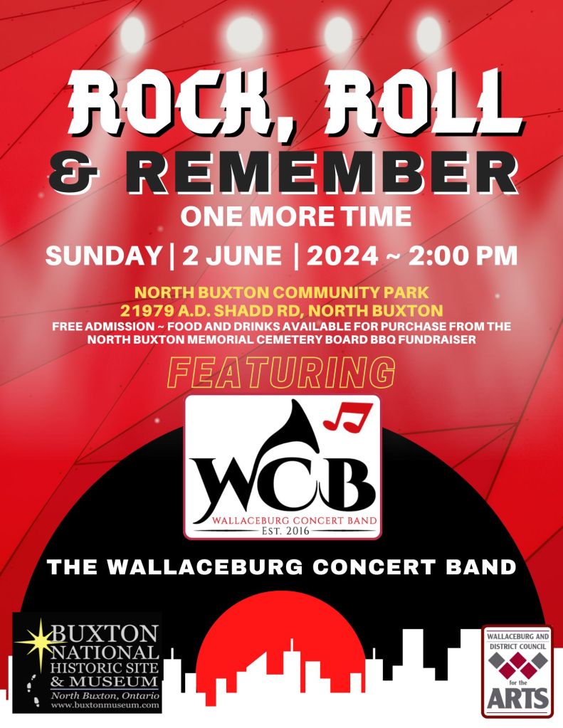 Did you miss our concert on April 13th? The band absolutely rocked the place and we’re going to do it all again….with the addition of even a few more songs….in a much more comfortable location. Plan to join us on Sunday afternoon, June 2nd at 2 pm in North Buxton. It is going to be a HUGE, rockin’ party! Bring your lawn chairs and join us on the grounds of the Buxton National Historic Site and Museum. They have a huge pavilion for us to play under, the grounds are huge, and unlike any other park we play in, food will be available! They are excited to host us in Buxton and we’re every bit as excited to bring our music to them! If you enjoyed our “Rock, Roll and Remember Concert in Wallaceburg, why not come out and hear it again before we pack the music away? Make the drive on a lazy Sunday afternoon and have a blast with us! You’ll hear music by The Stones, Michael Jackson, Toto, Paul McCartney, Steppenwolf, Chicago, Elton John, Deep Purple, Michael Buble, the Beatles, Aretha Franklin, music of the 50’s and 60’s, Frank Sinatra and some great vocals!