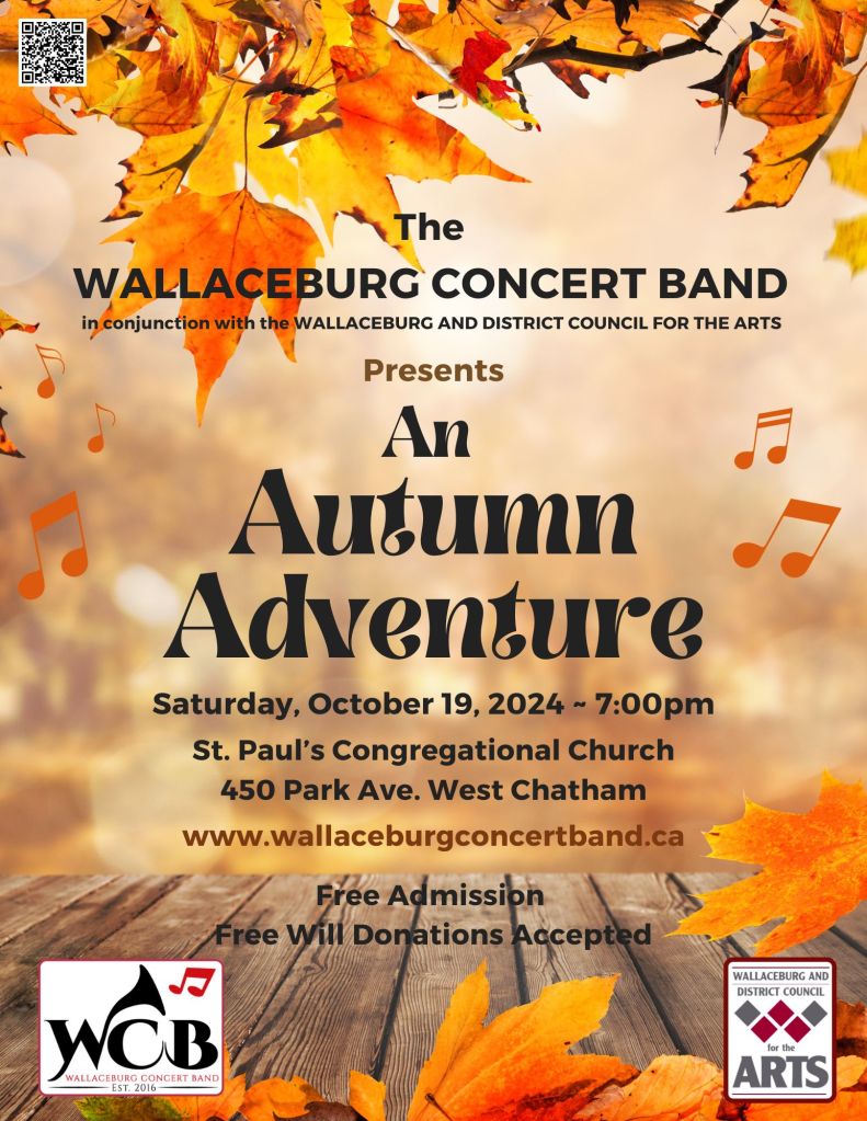 The Wallaceburg Concert Band is back at it, for a new season, and is preparing for our next concert, Saturday October 19, 2024 at 7:00pm. This will be a concert like you have not heard before from the WCB. We hope you will join us. Please see the video or poster below for more information.